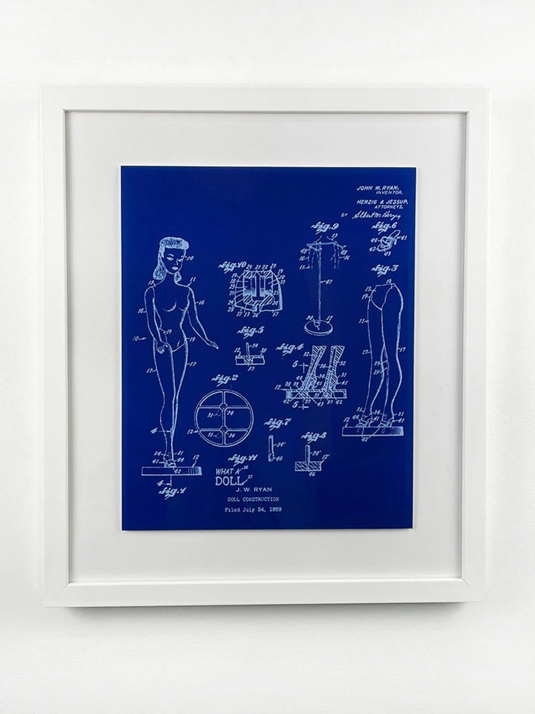 Our Barbie™ Blueprint in Blue is a gorgeous and modern way to feature the original Barbie™ patent, submitted in 1959! These unique pieces are printed and floated on a white mat to add the perfect amount of fabulousness to your room.