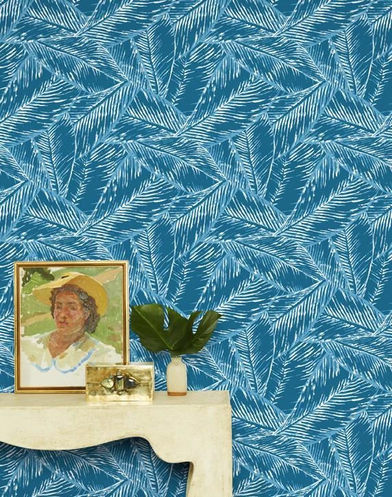 Jump on board the tropical trend and get some green love up on your walls with our playful palm tree leaf wallpaper print. Playful colors such as keylime, creamsicle, caribbean and cadet blue bring a modern colorful feel to the every popular palm tree leaf print that is so hot in the interior design world right now. This statement easy breezy wallpaper is perfect to compliment a new house make over bringing a Honolulu holiday look to your home.