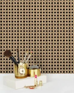 ‘Faux Caning’ Wallpaper By Wallshoppe – Onyx