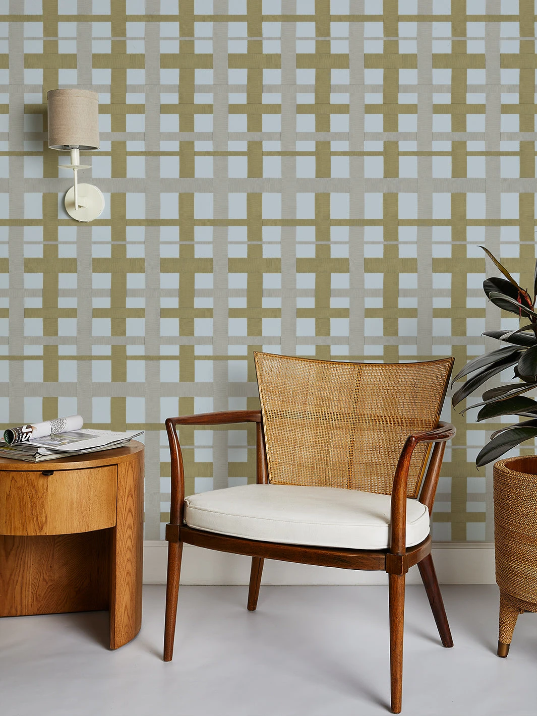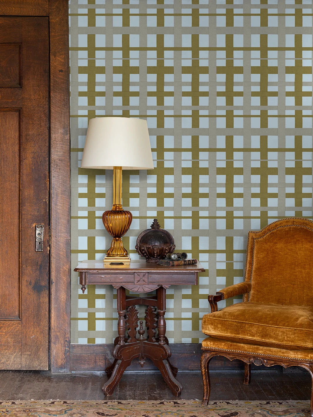 ‘Crosstown Plaid’ Wallpaper By Sarah Jessica Parker – Olive On Silver
