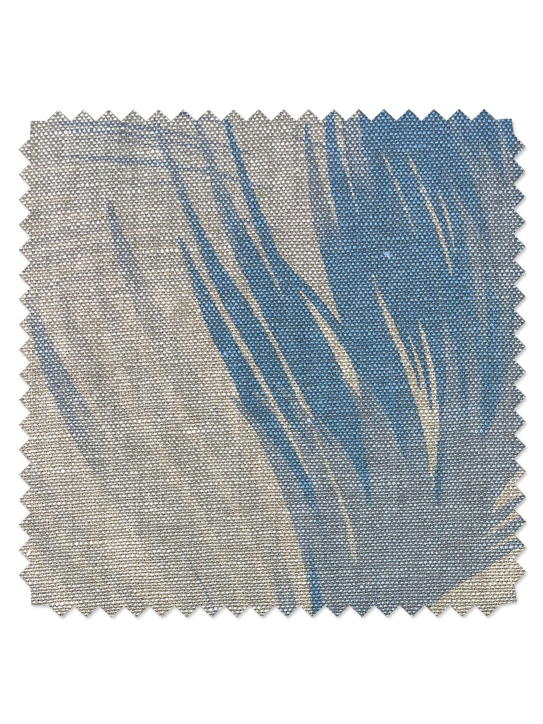 ‘Fabric By The Yard – Belafonte Palm – Blue On Flax Linen
