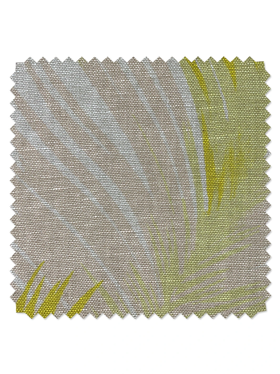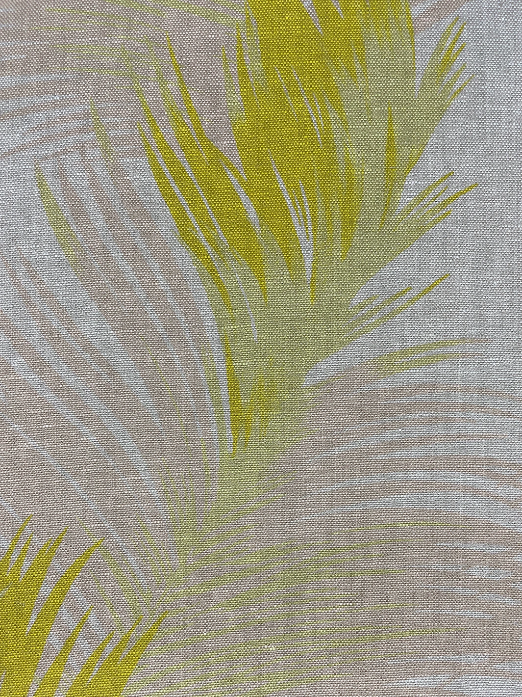 ‘Fabric By The Yard – Belafonte Palm – Yellow On Flax Linen