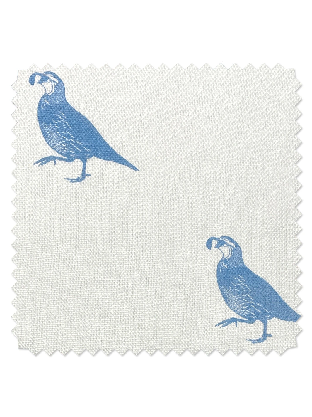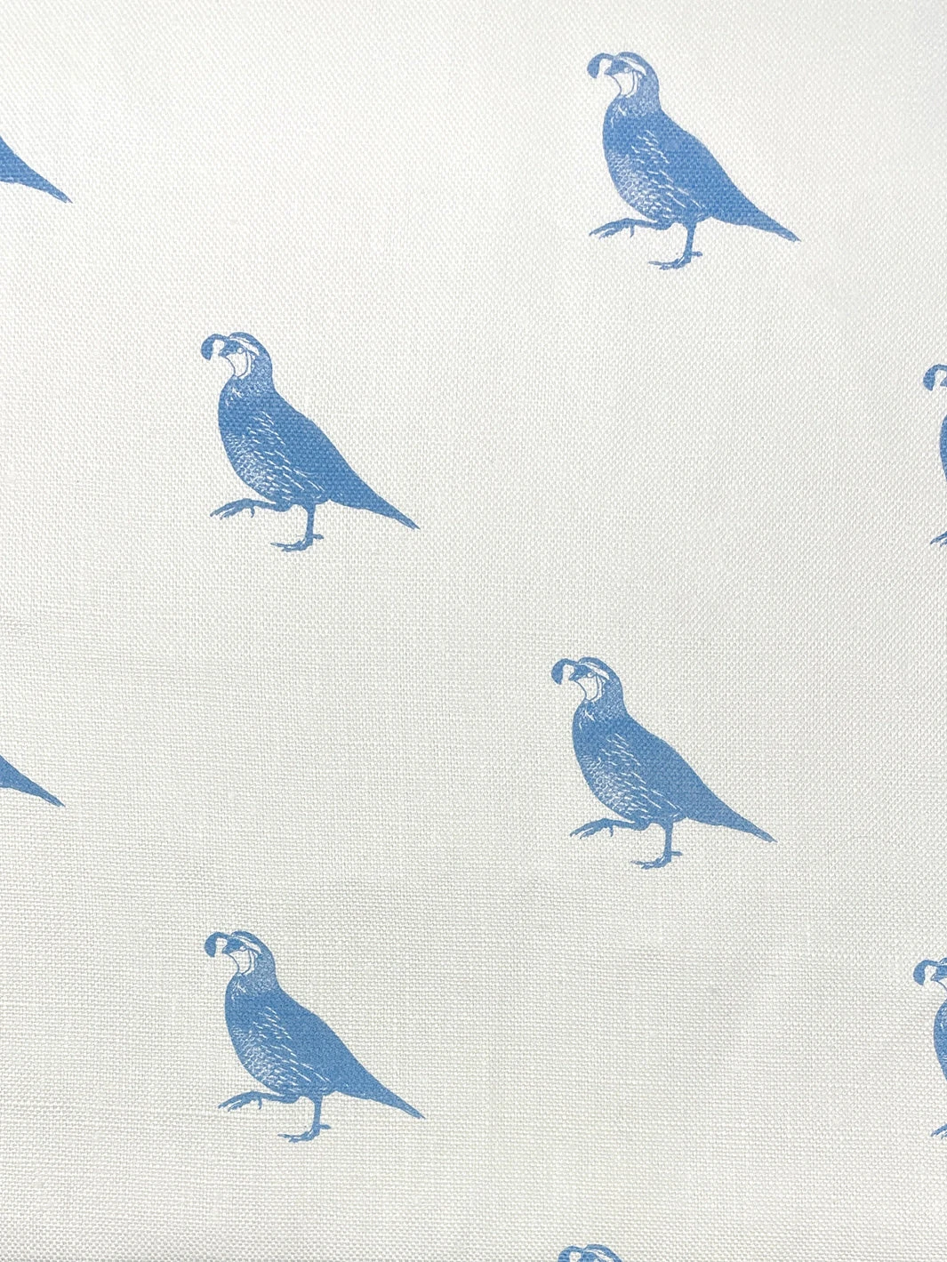 ‘Fabric By The Yard – California Quail – Blue On Linen