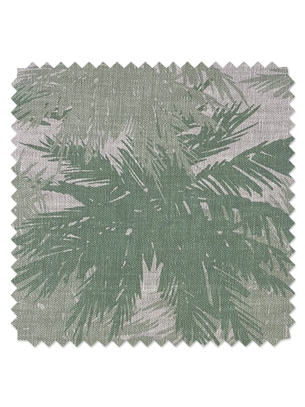 ‘Fabric By The Yard – Palm Shuffle – Green On Flax Linen