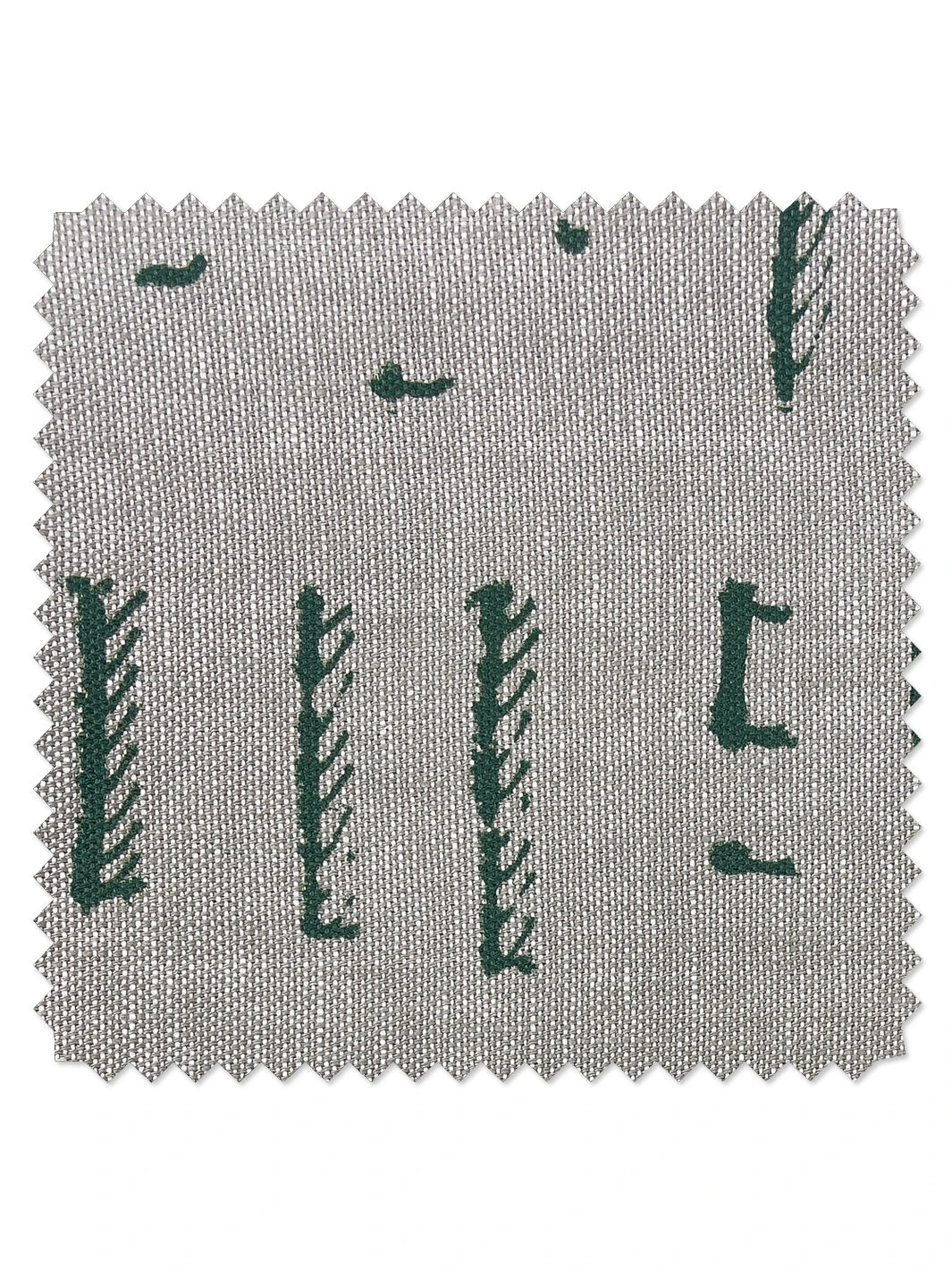 ‘Fabric By The Yard – Stitch – Green On Flax Linen