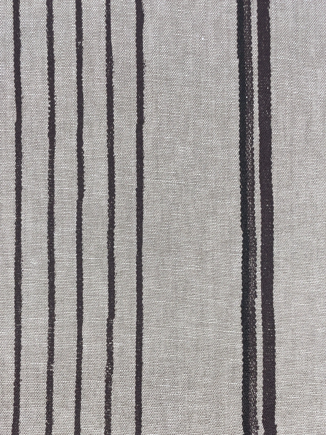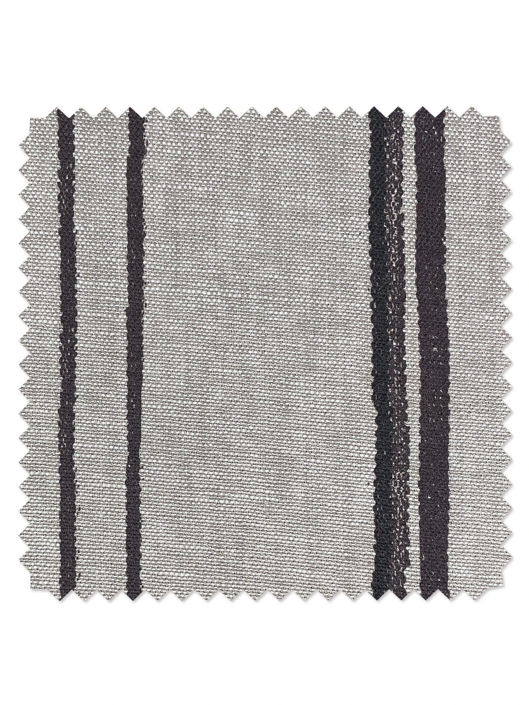 ‘Fabric By The Yard – Two Tone Stripe – Black & Chocolate On Flax Linen
