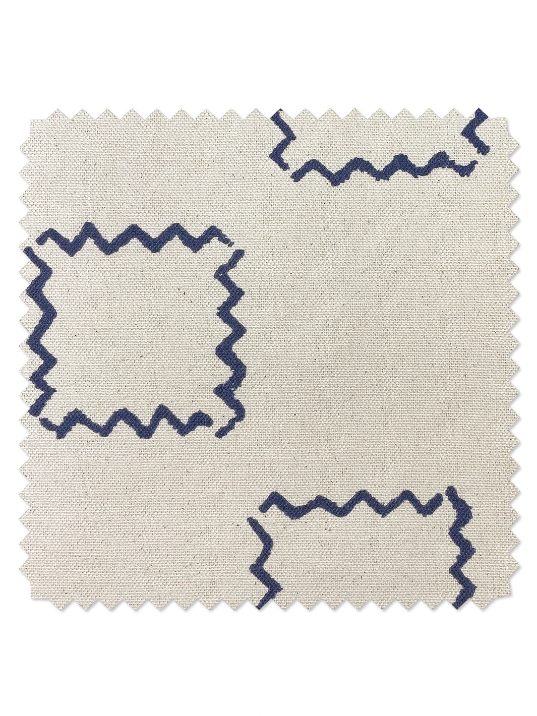 ‘Fabric By The Yard – Zag Squares – Navy On Raw Canvas