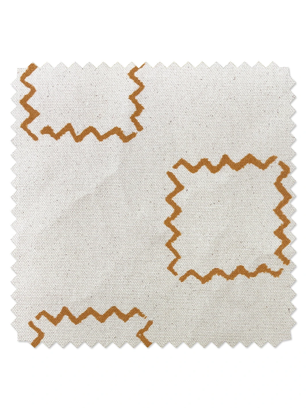 ‘Fabric By The Yard – Zag Squares – Terracotta On Raw Canvas