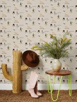 Just as the original Barbie™ doll revolutionized the toy industry, Wallshøppe’s new line of Barbie™ wallpaper is sure to transform any space into a nostalgic and fun ode to mid-century, classic fashion. These unique wallpaper designs come in a variety of colors and styles, so whether you choose to brighten up an entire room, adorn an accent wall, or refinish a piece of furniture, you’ll be sure to find the perfect wallpaper design with this timeless collection.