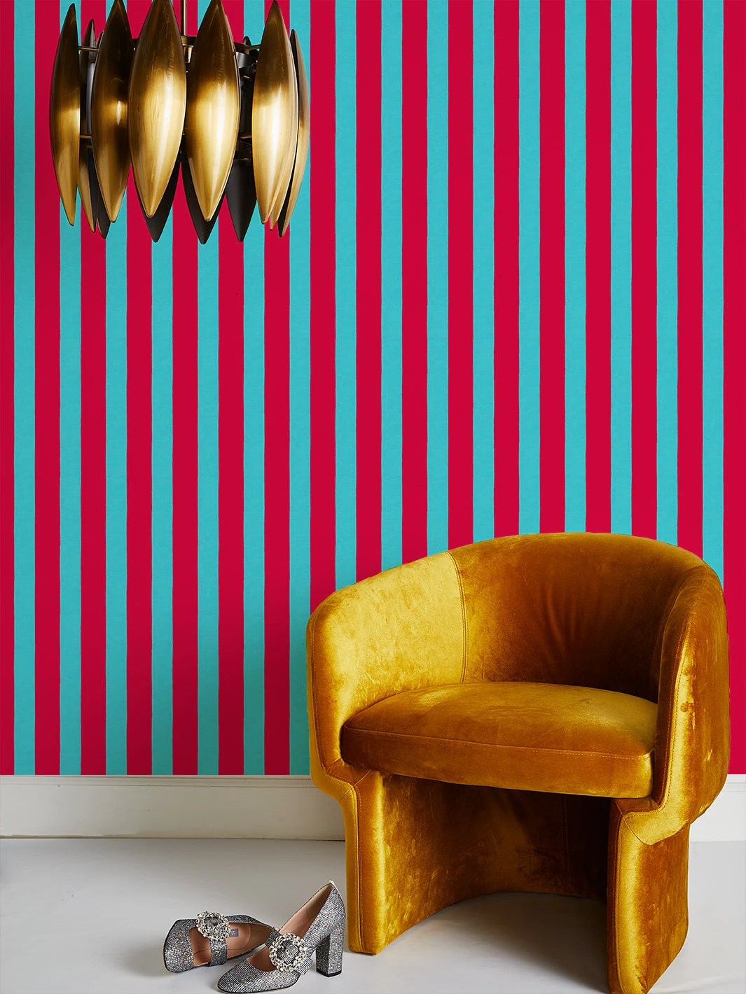 Be the first to review “‘Grosgrain Stripe’ Wallpaper By Sarah Jessica Parker – Scarlet Capri Blue” Cancel reply