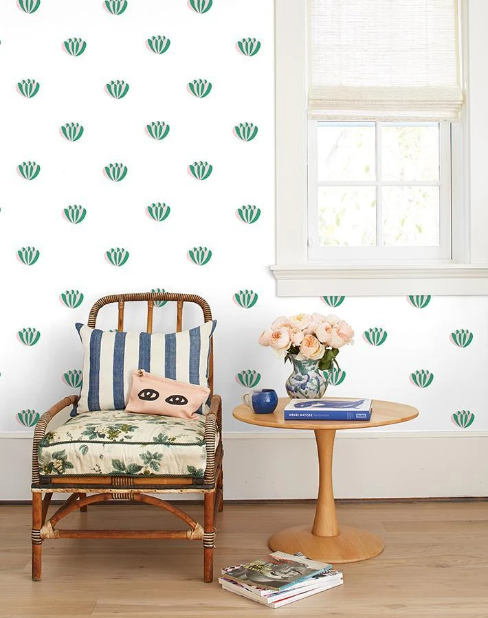 ‘Lotus’ Wallpaper By Clare V. – Emerald / Pink