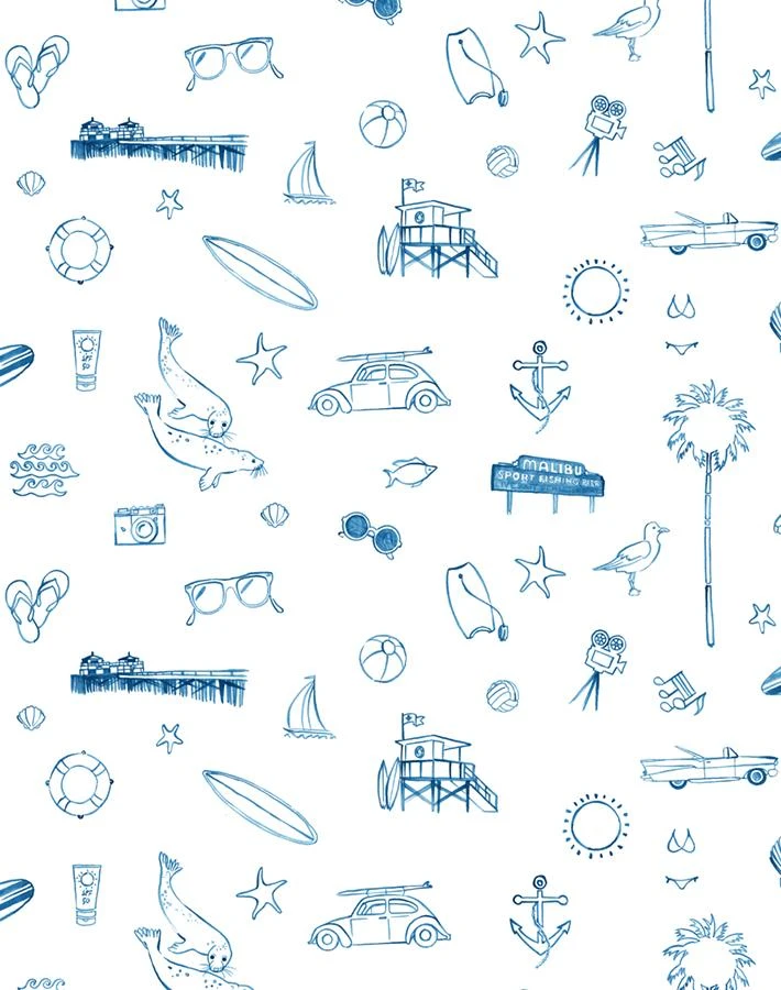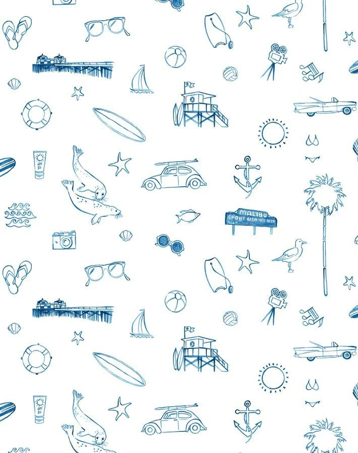 ‘Malibu’ Wallpaper By Nathan Turner – Blue On White