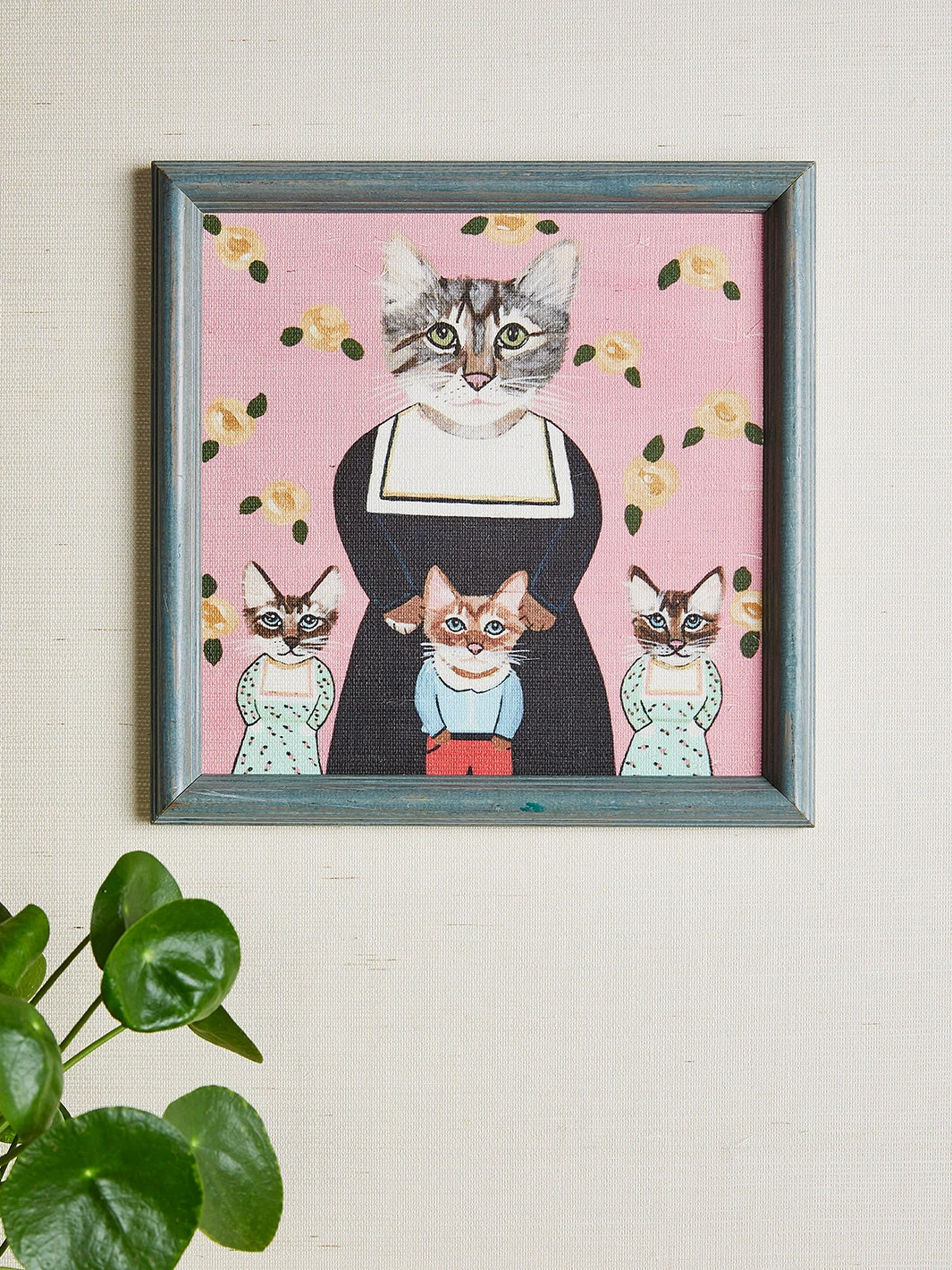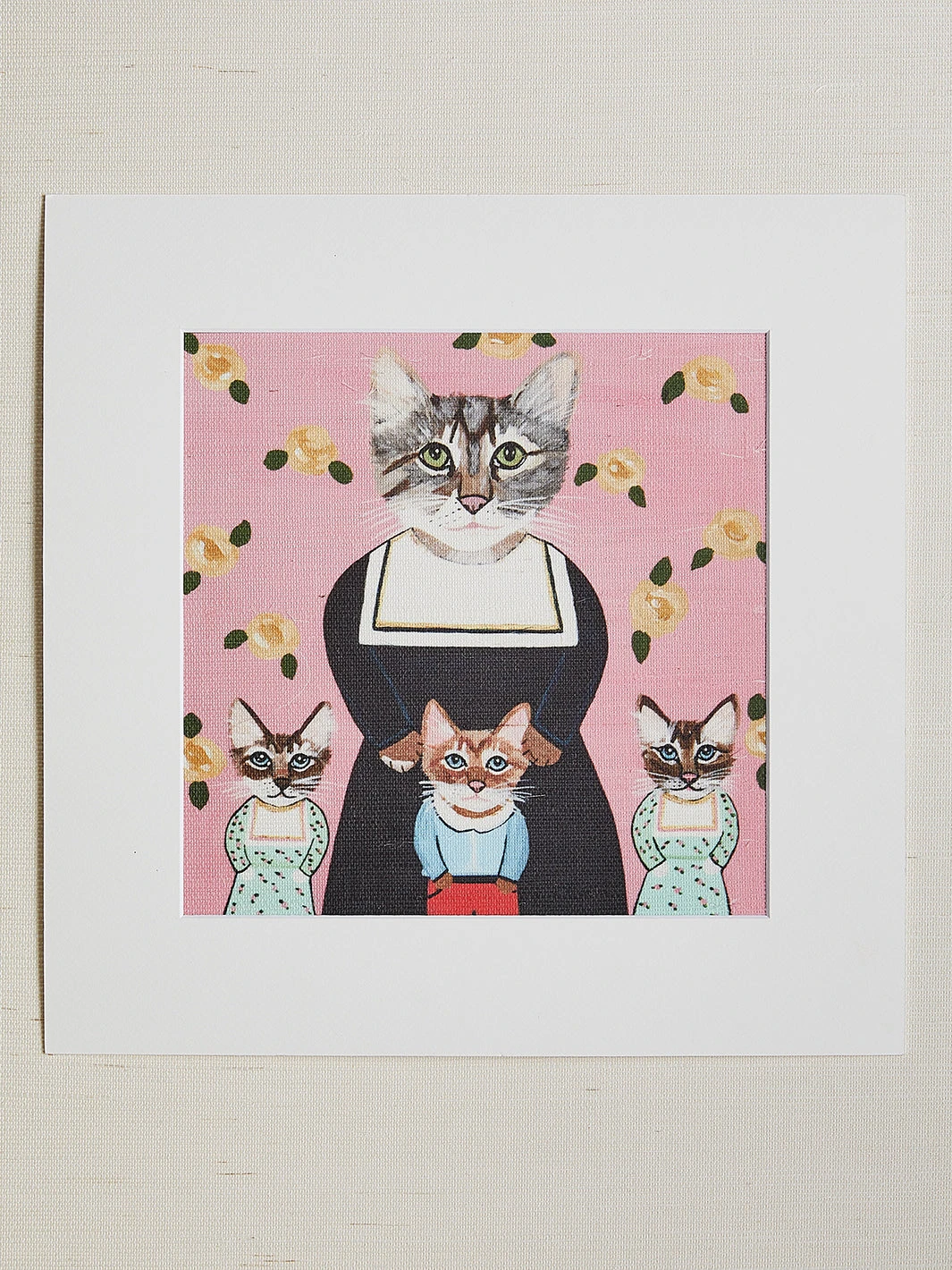This print byĀ NYC artist Carly Beck featuring four of the cutest kitties will fill your home with delight. Printed onĀ natural woven paper, this high-quality art print ships with a premium ivory mat and repositionable backing, ready for the frame of your choice!Ā Complete the look with our line of wallpaper designed by Carly Beck.