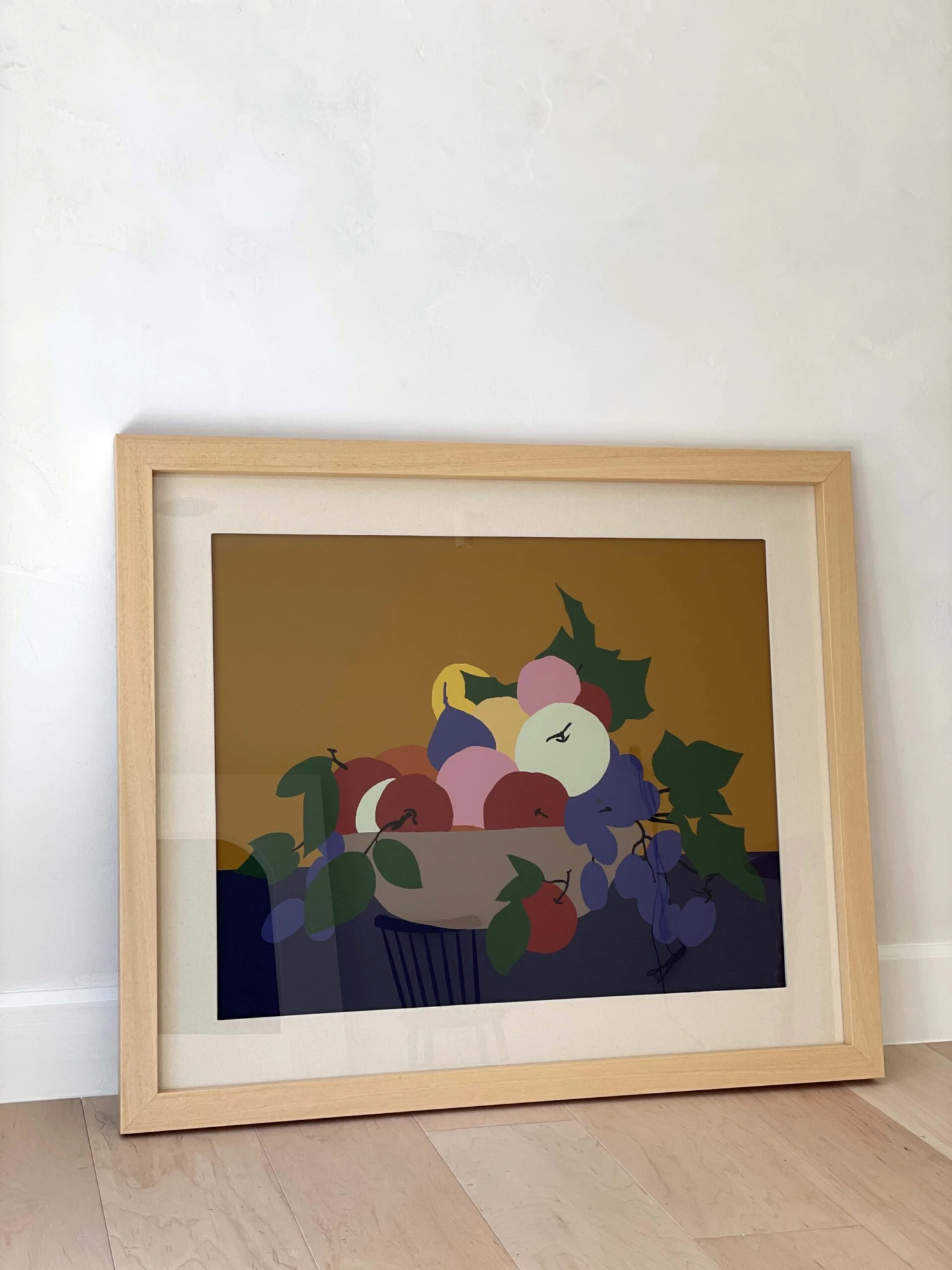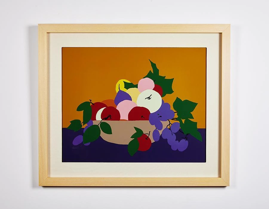 Inspired by the mid-century works of Matisse & School of Paris era, this graphic still life is printed on raw canvas which is floated on a top mat & framed in our natural wood frame. The perfect piece for the mid Century design fans.