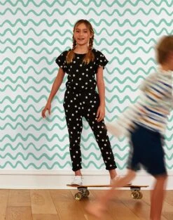 Mod Shapes by Barbie™ wallpaper is fun with a modern yet retro feel. Featuring funky shapes in a tasteful Art Deco design, this beautiful wallpaper shows Barbie™ in everything from fun dresses to smart overcoats. Classic and colorful, this wallpaper has a vintage feel without being too whimsical. Stylish and fashionable, it’ll give any girl’s room a modern twist with a pop of color. Create a focal point by papering a nook or one wall, or do the whole room in it.