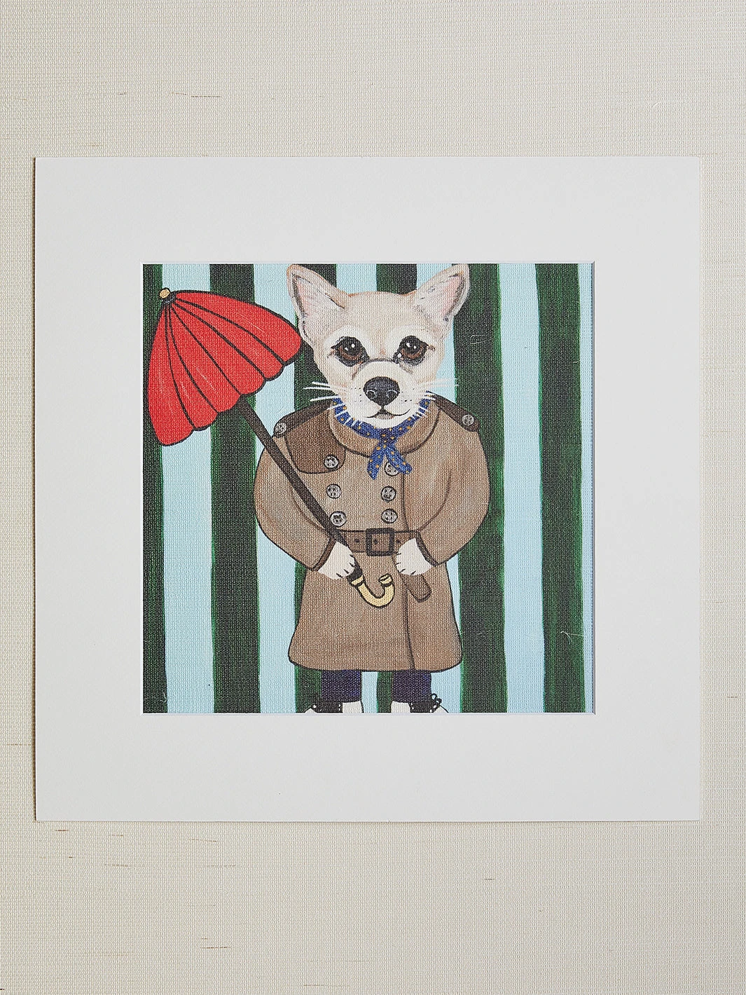 This print byĀ NYC artist Carly Beck featuring a dog anticipating rain will fill your home with delight. Printed onĀ natural woven paper, this high-quality art print ships with a premium ivory mat and repositionable backing, ready for the frame of your choice!Ā Complete the look with our line of wallpaper designed by Carly Beck.
