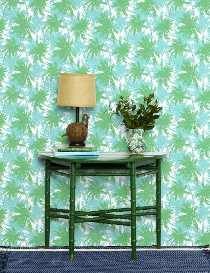 Wallshøppe’s Palm Shuffle wallpaper packs a pop of vibrant color and breezy Bahama’s glam to any home that needs a boost of summer energy. Whether you want to create a bright impactful statement wall, or decorate your living room walls, our Palm Shuffle wallpaper welcomes an exotic jungle into your home.