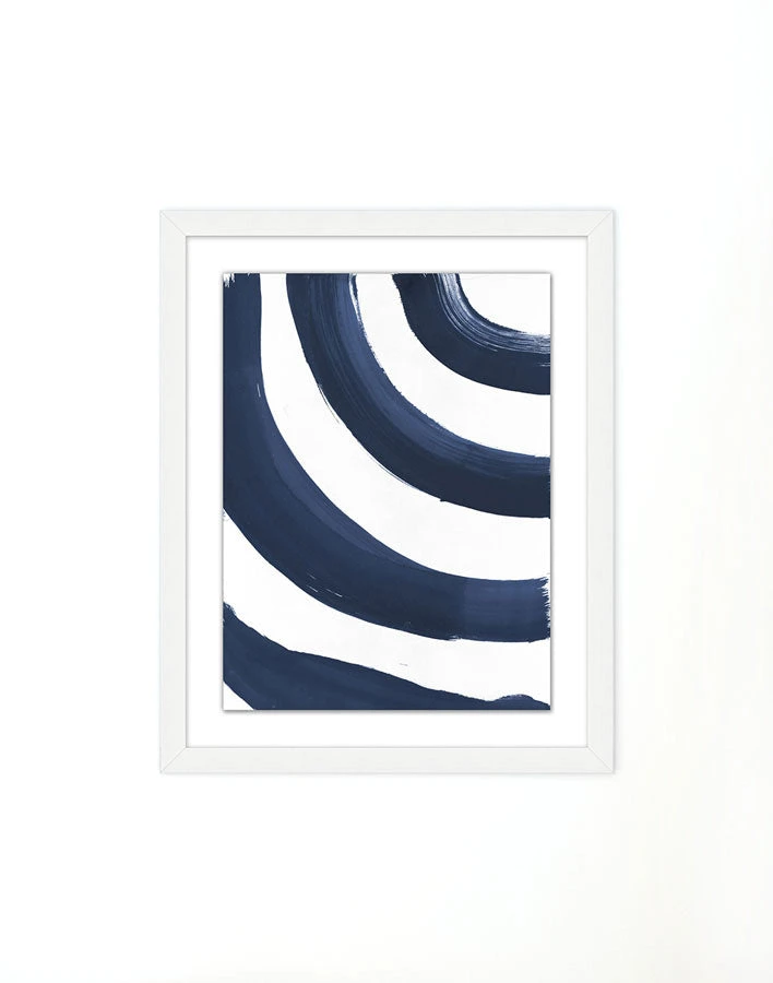 Bringing joy through color therapy with our painterly over the rainbow framed art. Serene hues of navy and white set against a crisp white frame.