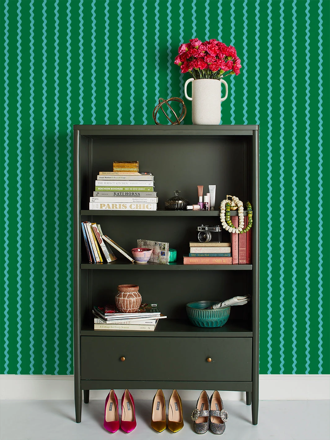 ‘Ric-Rac Stripe’ Wallpaper By Sarah Jessica Parker – Emerald Capri Blue