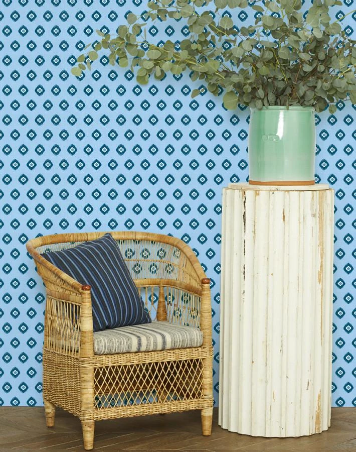 Get transported to tropical warm Marrakech with our tangier geo pattern medallion wallpaper. Epitomizing a modern exotic look, the geometric lattice like emblems shift the eye gently over the design making the perfect modern statement wall. Available in a large selection of over 10 colorways from deep warm reds to light greens and soft blues.