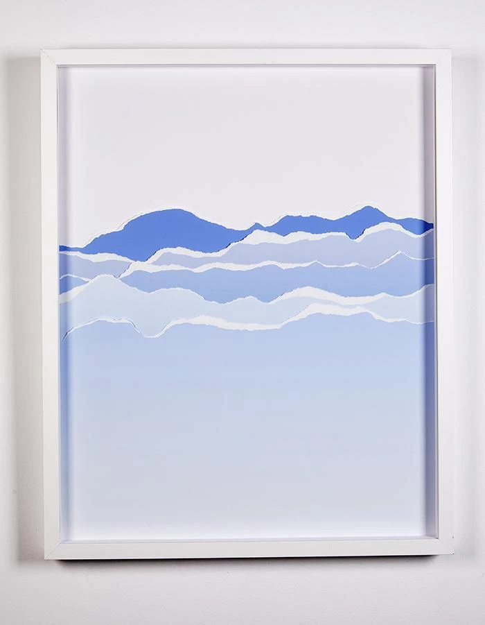 Bringing you the waves of the Pacific Ocean with a unique technique of hand ripped pastel papers that are layered to create the hues of the California coastline. You can start dreaming of Summer now!