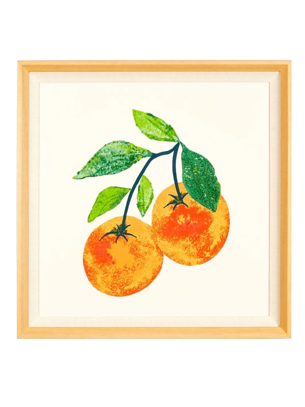 Can you smell the zesty orange groves of Ojai? Our Orange Crush series will take you to the scenic groves of Ojai. Painterly oranges printed on blush matte paper. The wood framing make these contemporary yet warm.