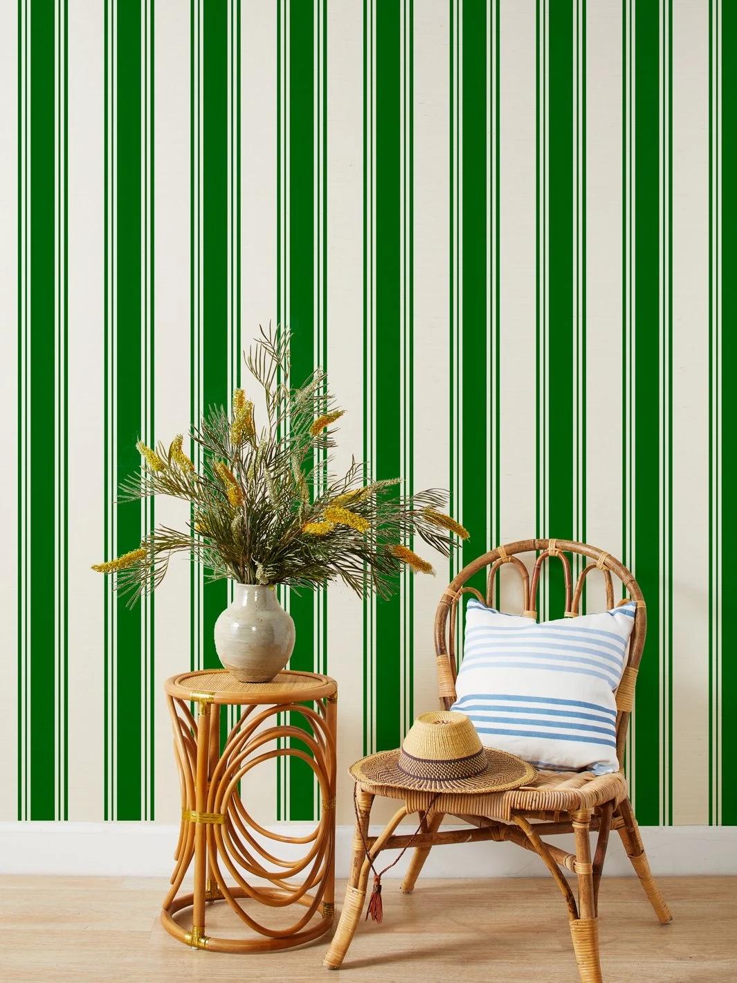‘Yorkshire Stripe’ Grasscloth Wallpaper By Wallshoppe – Green